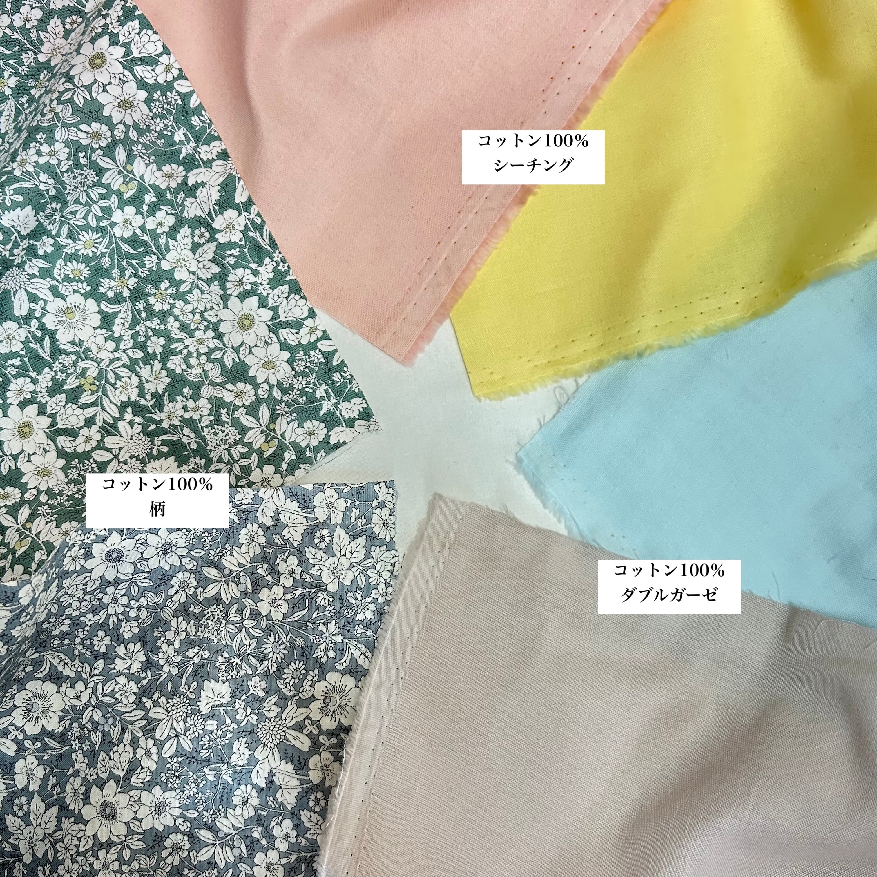 シーチング生地、柄生地、ダブルガーゼ生地の