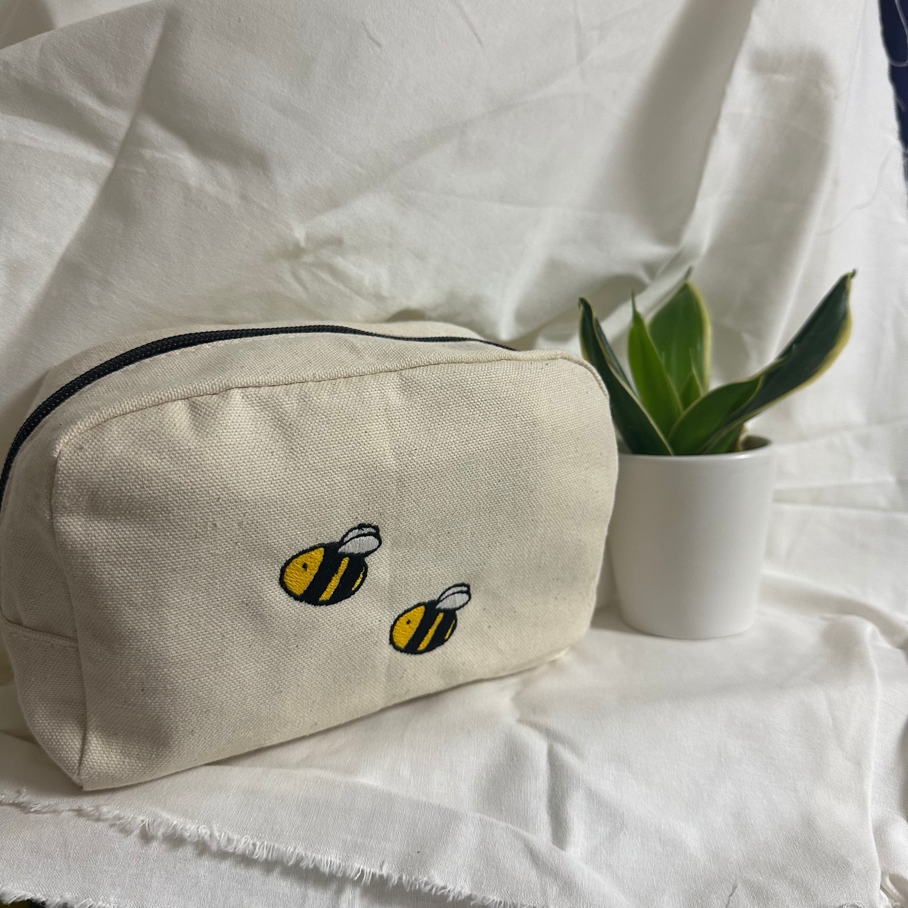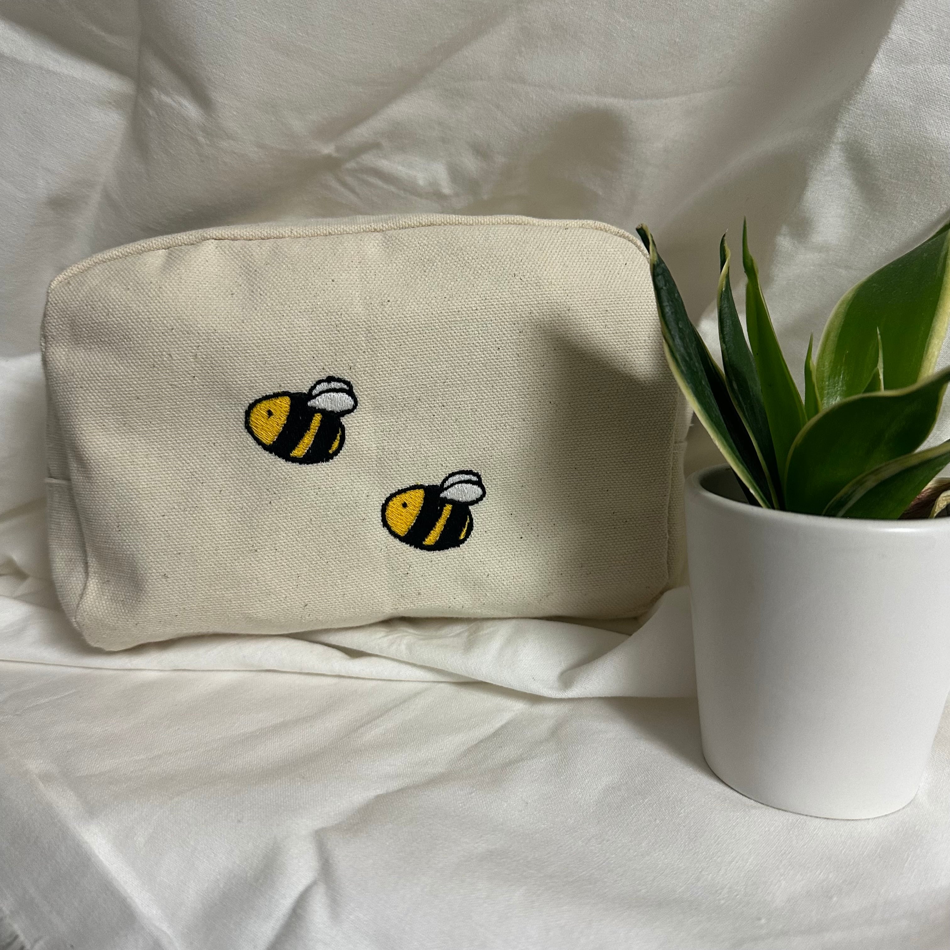 シンプルなポーチにやさしい雰囲気の刺繍入りポーチ。