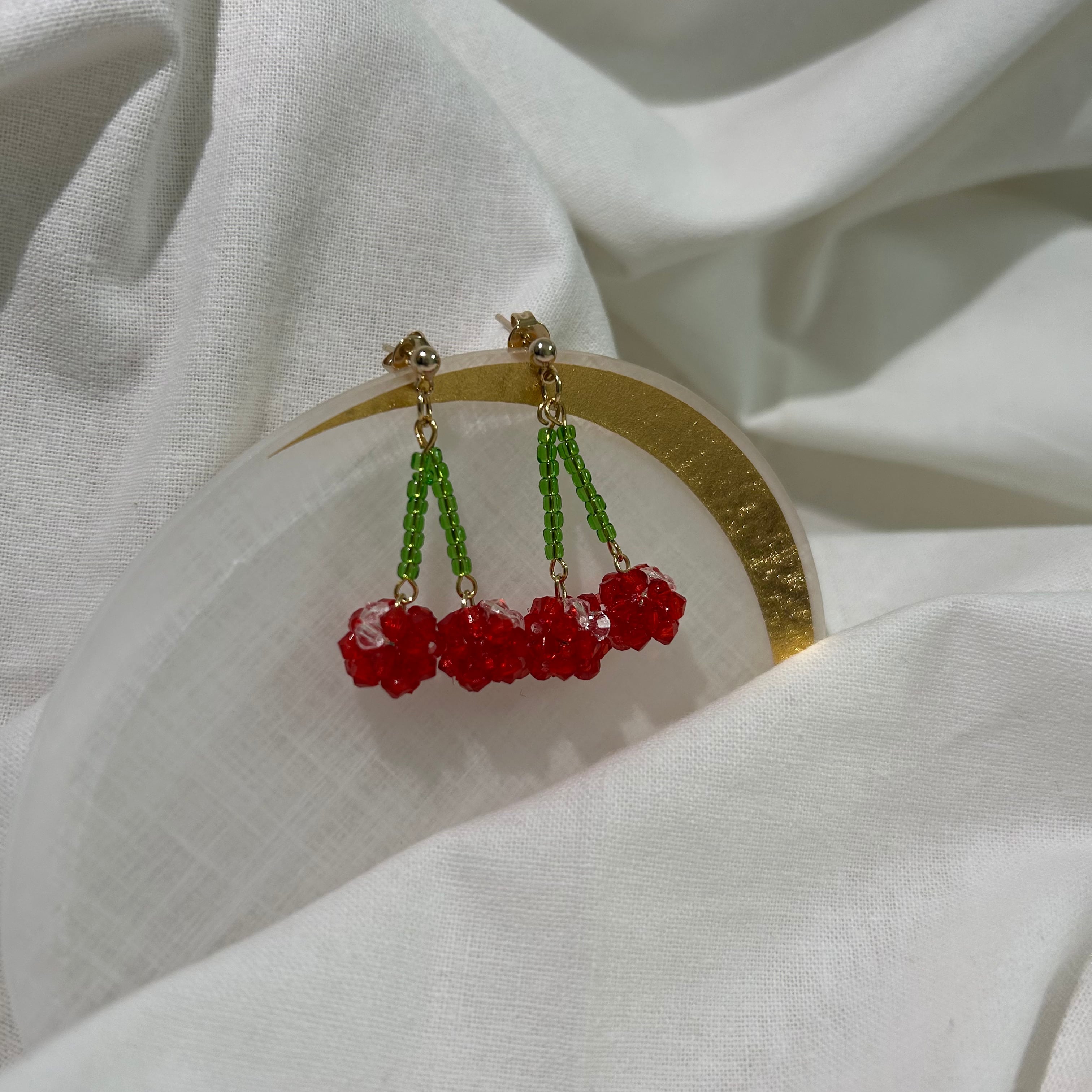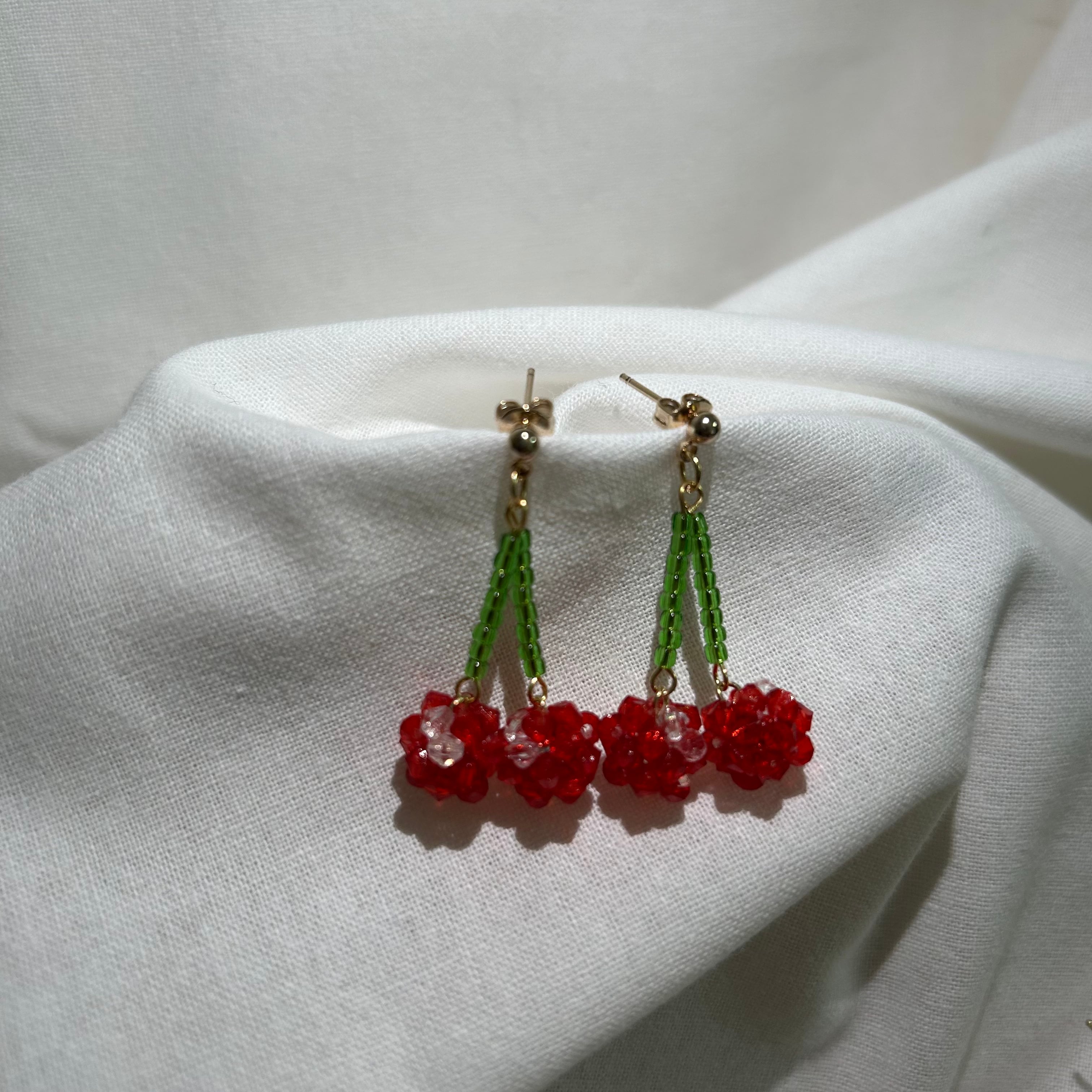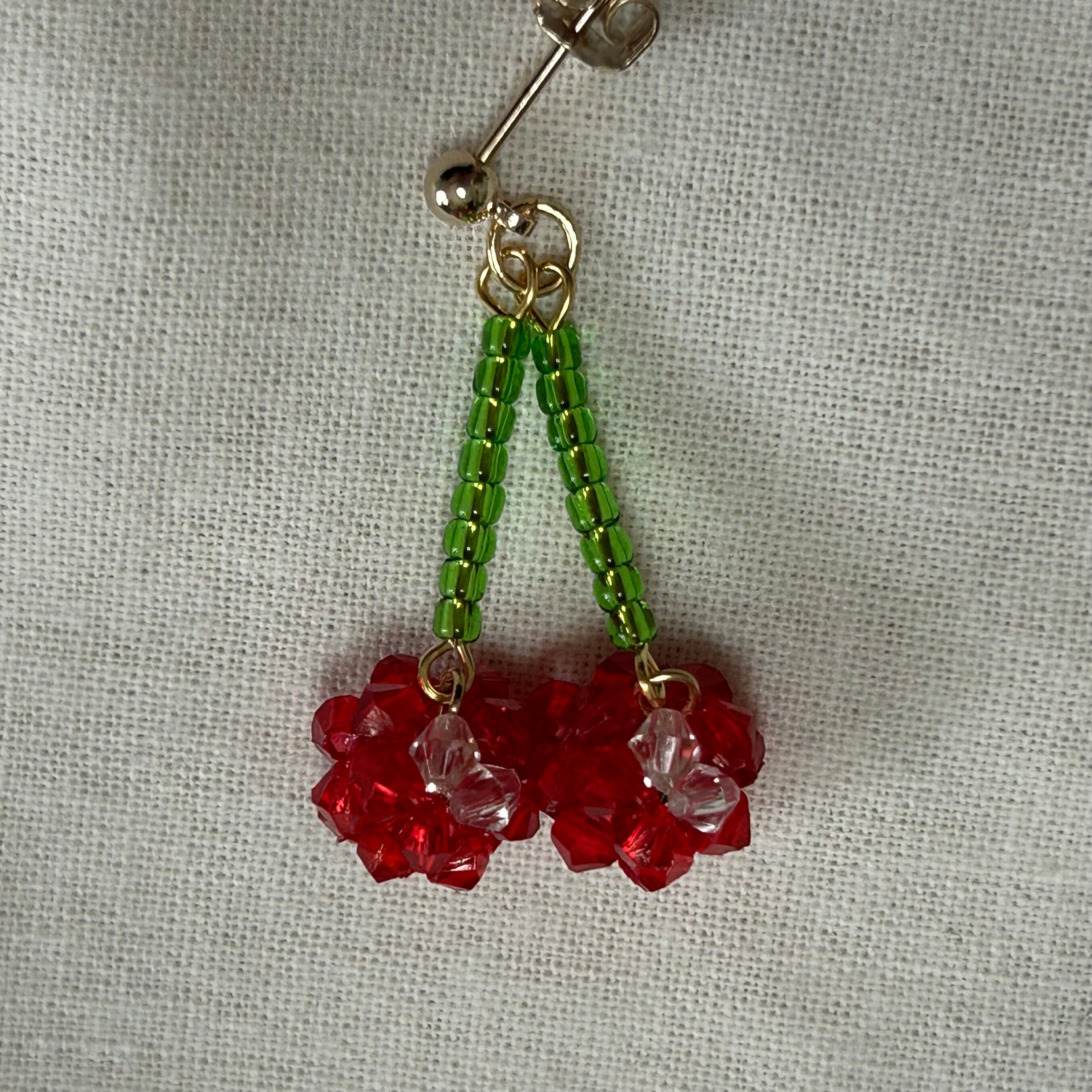 さくらんぼモチーフのビーズピアス